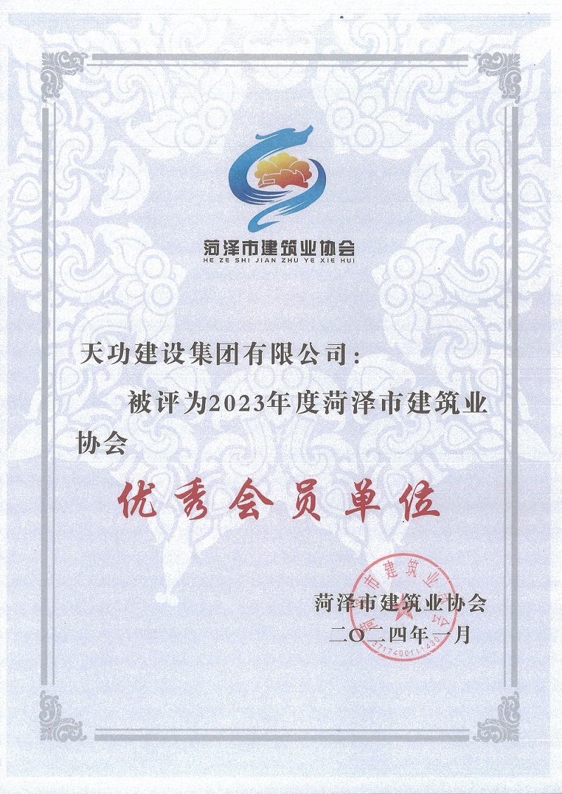 市建筑业协会2023年度优秀会员单位-尊龙凯时人生就搏建设集团有限公司官网